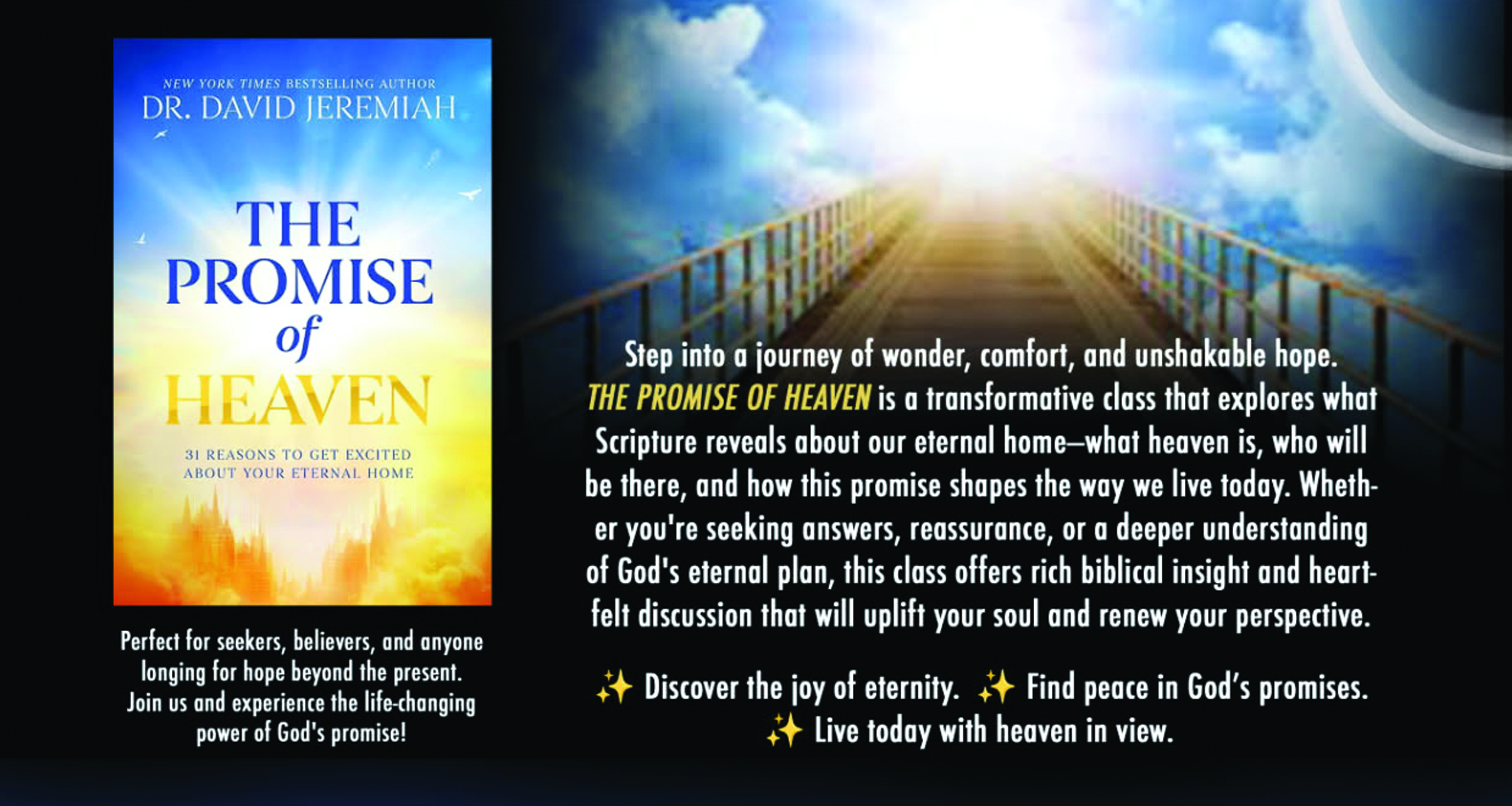 Perfect for seekers, believers, and anyone longing for hope beyond the present. Join us and experience the life-changing power of God’s promise!